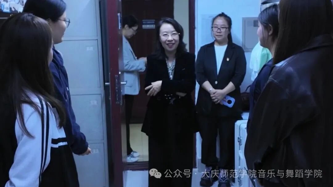 在走访过程中,刘书记对同学们报考大庆师范学院,选择来到音乐与舞蹈学院就读表示欢迎,并与同学们亲切交谈。在与同学们聊天过程中,刘书记详细询问了学生们基本情况、初入校园的感受以及对新环境的适应程度,并从住宿饮食、生活习惯、职业发展规划等多方面与大家进行了深入的交流。她鼓励同学们要珍惜大学时光,明确学习目标,合理规划职业生涯,积累扎实的专业知识,勇于实践,不断提升综合能力,以优异的成绩和出色的表现回馈学校、老师和家长的殷切希望,真正做到学有所用、学有所成,不负青春、不负韶华。