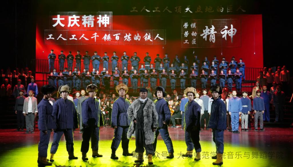 2025年10月11日至14日,大型原创交响情景剧《大国脊梁·百年浩歌》在大庆歌剧院掀起集中观看热潮。作为该剧协办单位,大庆师范学院音乐与舞蹈学院师生组建了150人的演出团队参加了本次演出,以实力为这部“工运史诗”注入青春力量,让学生们在高水平的艺术实践中实现专业能力的提升。