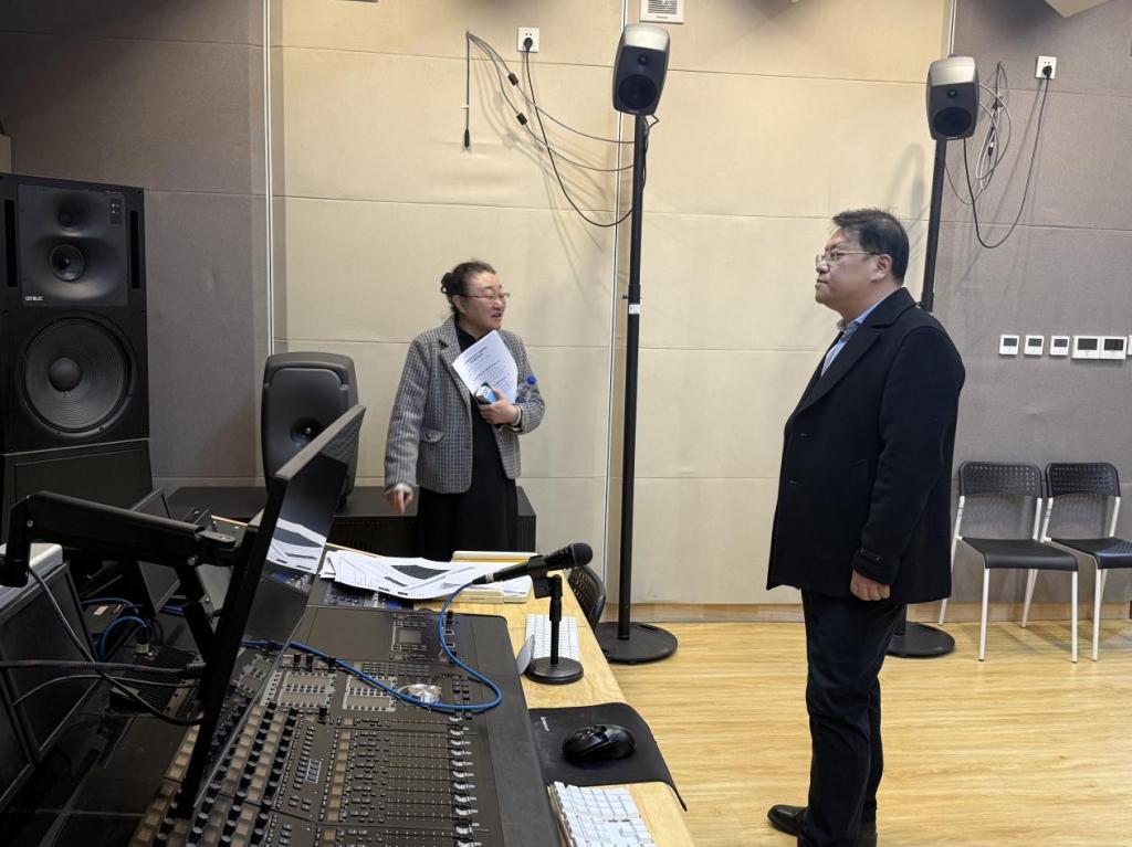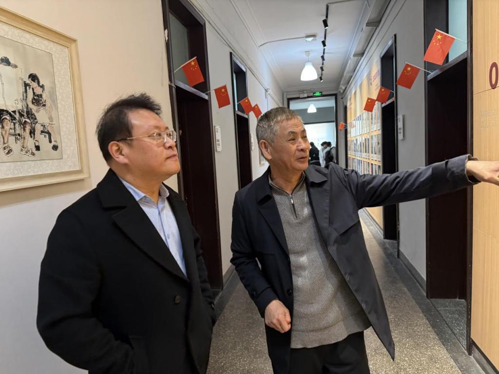 座谈会后,东北师范大学音乐与舞蹈学院副院长戴竹音带领任广明院长一行参观了学院的教学环境与设施。任广明对其将现代教育技术深度融合于传统艺术教学、营造沉浸式育人环境的做法给予了高度评价。